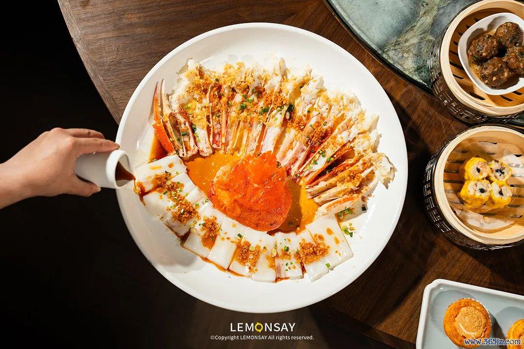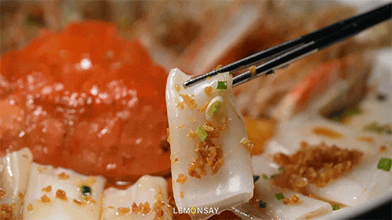 蒜蓉陈村粉蒸长脚蟹,传统的作念法外皮盘底铺了爽滑的陈村粉,蟹肉搭配蒜蓉和酱油,吃起来很清甜,鲜掉眉毛!