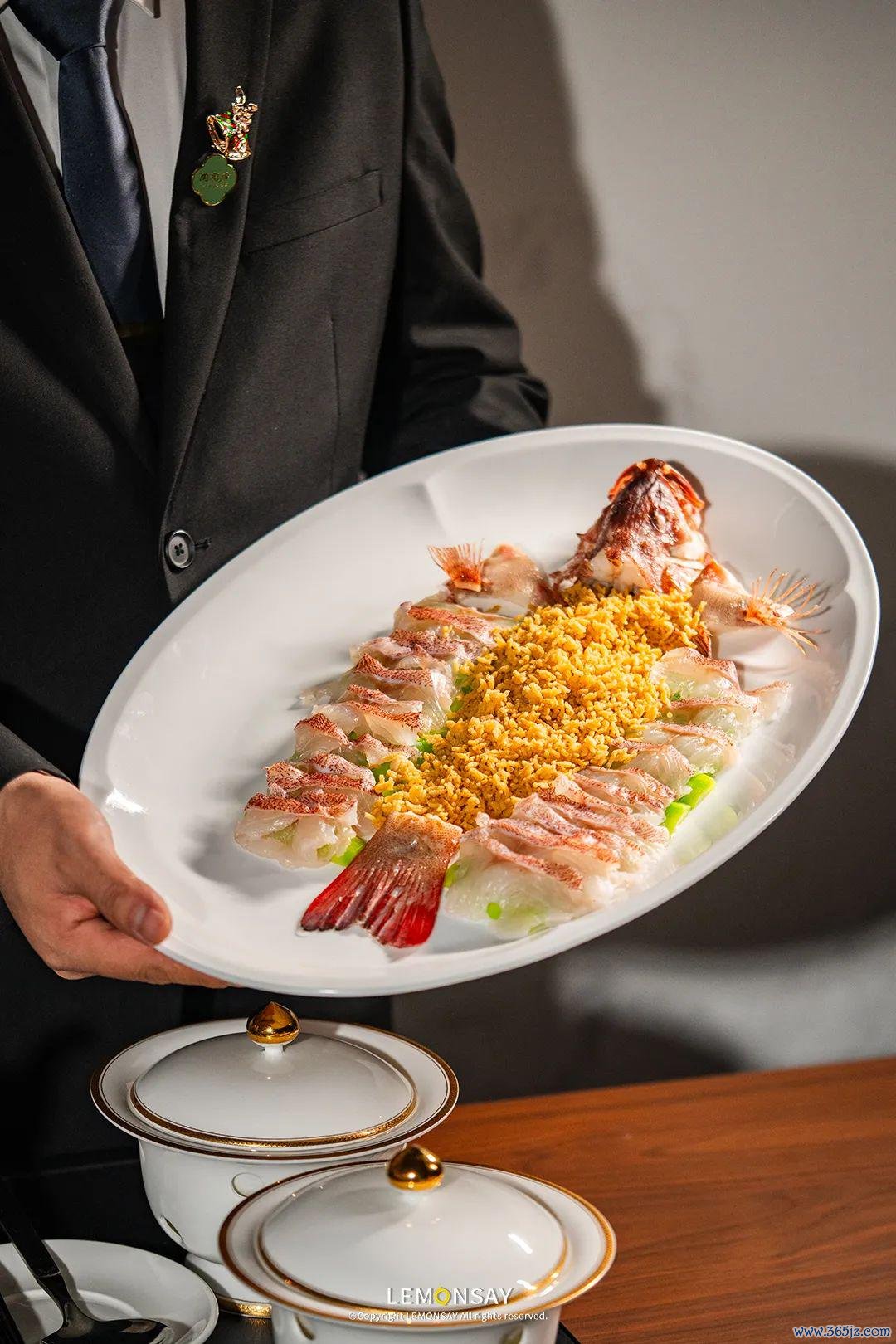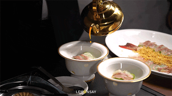 “鱼米之香”是陶陶居对东星斑的一种独有作念法。大厨先对东星斑进行全心的改刀起肉,倒入滚热的浓虾汤,诈欺虾汤的高温快速将鱼肉灼熟。品味时,先喝上一口浓郁鲜香的虾汤,再吃鱼肉,鲜美爽滑,那是一种从舌尖彭胀到全身的逍遥之感。
