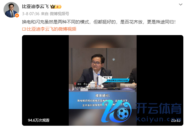 3月8日,比亚迪集团品牌及公关处总司理李云飞示意:“换电和闪充固然是两种不同的款式,但都挺好的,是百花王人放,更是同归殊涂!”两者的中枢方针都是料理新动力汽车补能慢的痛点,促进油转电。
