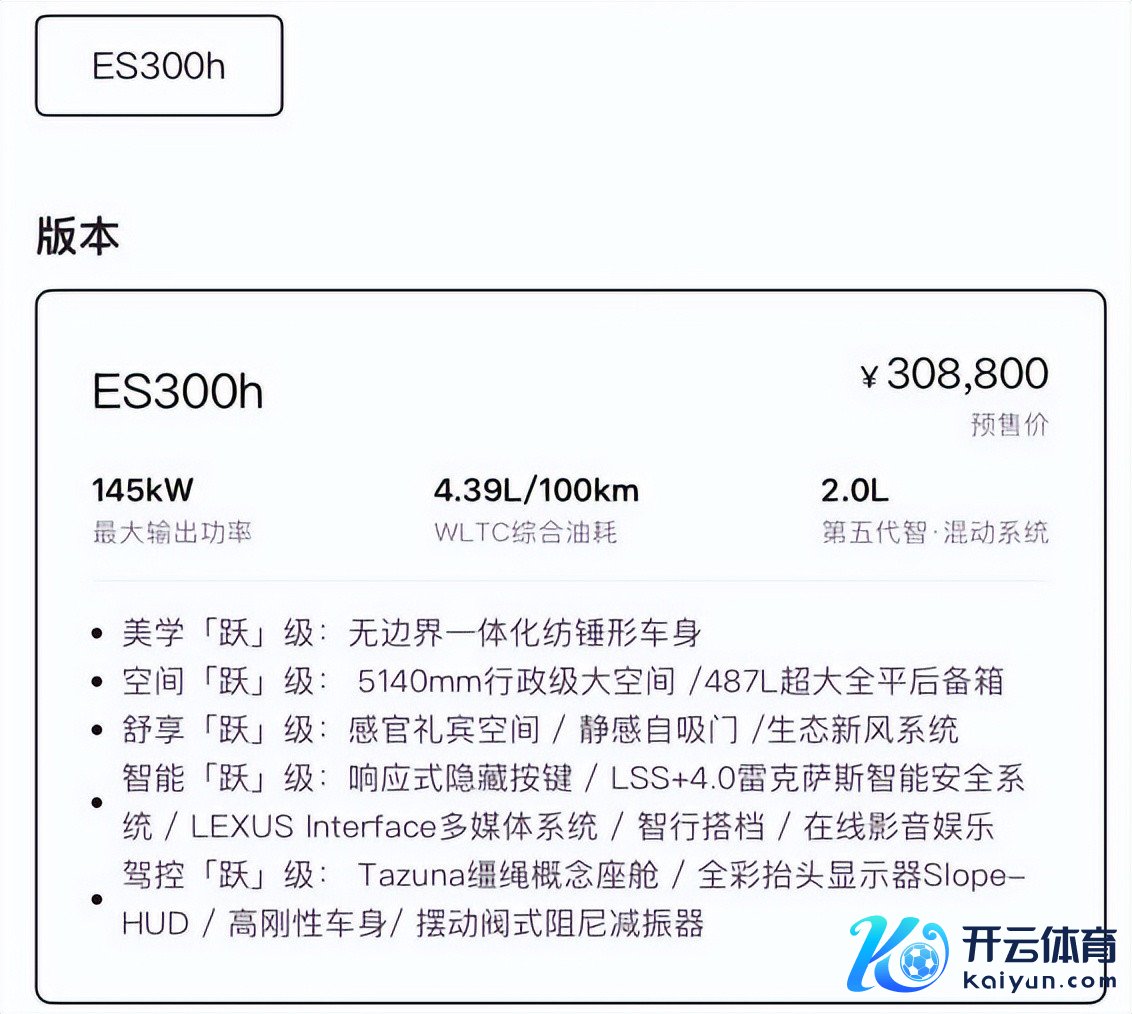 但问题出在能源和节拍上。ES300h搭载的2.0L混动系统,概述功率145千瓦,0-100km/h加快9.4秒。这个数据放在2026年,的确拿不脱手——20万级的国产纯电轿车一经在玩“3秒级”加快了。行将推出的纯电版ES350e,电机功率165kW,加快8.9秒,比“网约车之王”埃安S还慢。
