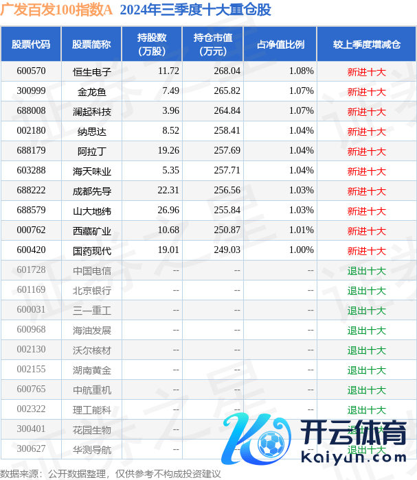 广发百发100指数A为指数型-股票基金,阐发最新一期基金季报表露,该基金钞票确立:股票占净值比94.97%,债券占净值比4.77%,现款占净值比0.69%。基金十大重仓股如下: