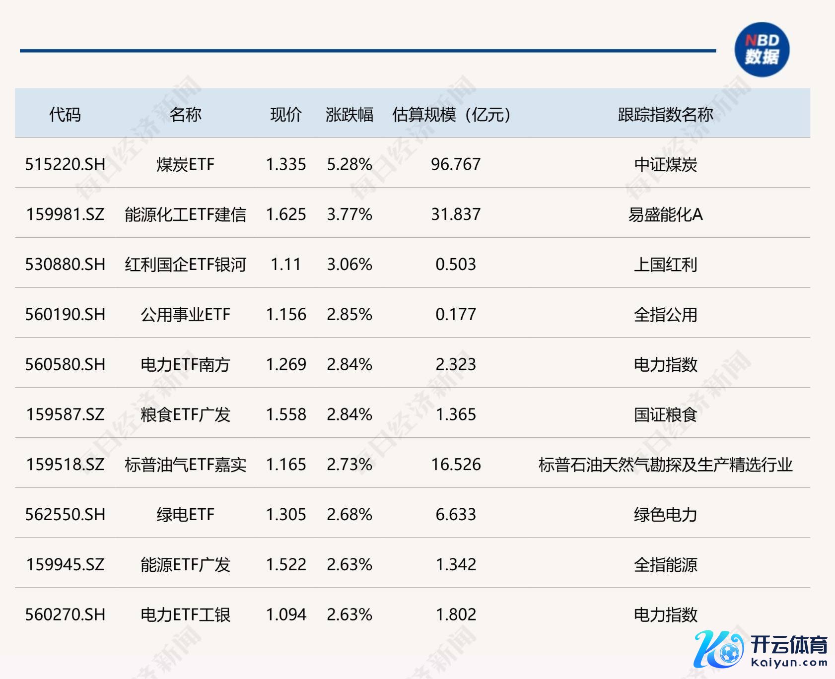 ETF涨跌幅方面,煤炭ETF涨超5%。